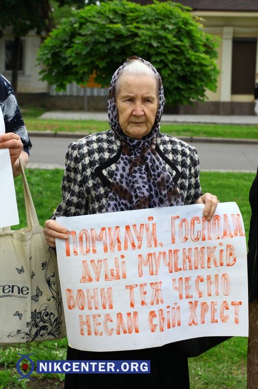 По окончанию службы николаевская общественница зачитала два стихотворения в память о депортированных крымских татарах, а участники акции возложили цветы к памятнику Героям Небесной сотни.