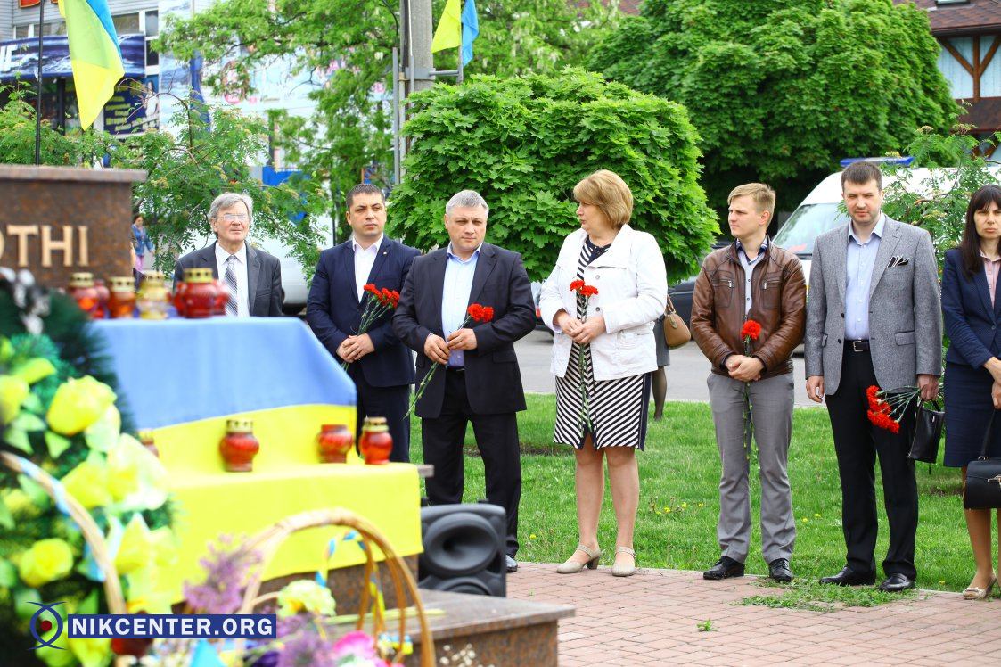 Почтить память погибших и возложить цветы пришли небезразличные горожане, члены политических партий и представители власти: вице-губернатор Николаевщины Николай Романчук, вице-губернатор Оксана Янишевская, глава областного совета Владимир Луста, первый вице-мэр Юрий Андриенко, вице-мэр Евгений Шевченко.