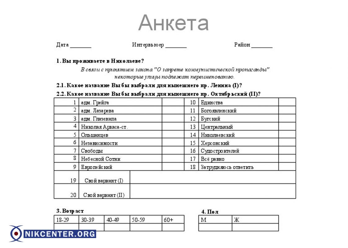 В Николаеве в связи с нагрянувшей декоммунизацией горожане оказались перед нелегким выбором переименования улиц и проспектов города. Активисты общественной организации "Самопомощь" провели социологический опрос жителей города о том, как бы они хотели переименовать проспекты Ленина и Октябрьский.