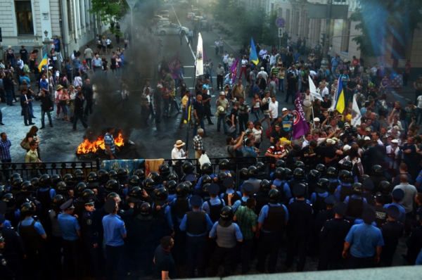 Четверо сотрудников правоохранительных органов были госпитализированы после столкновений с митингующими возле здания Верховной Рады в Киеве.