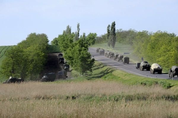 «Конвой из десятков военных машин, включая системы залпового огня «Ураган», военных грузовиков без номерных знаков и нескольких бронетранспортеров пересек южный российский город Матвеев Курган 24 мая и свернул в поле с дороги вблизи границы с Украиной», – сказано в сообщении.