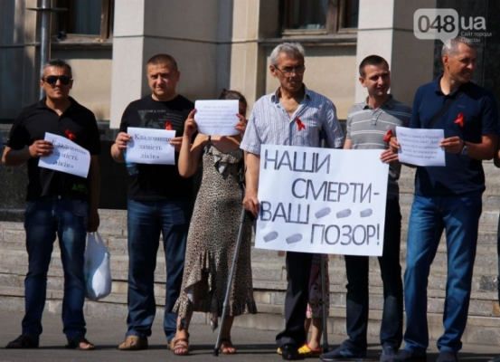 В Одессе подобная акция 27 мая утром состоялась под зданием областной государственной администрации. Пациенты и общественники пришли под управление с плакатами и красными ленточками на левой стороне груди – символом борьбы со СПИДом, чтобы привлечь внимание чиновников к своей проблеме и попросить помощи в ее решении, пишет «048.ua».