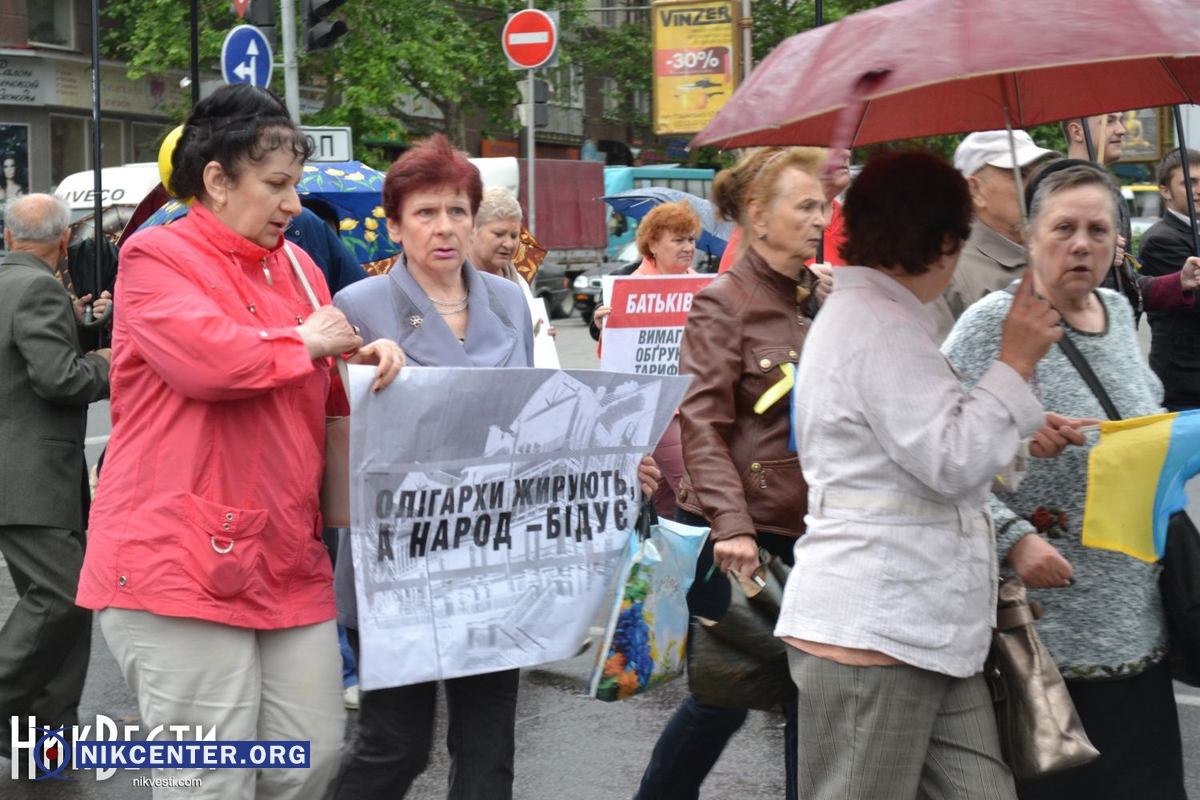 В Николаеве прошел так называемый марш протеста «Остановим тарифный геноцид», участники которого подписали резолюцию к главе правительства Арсению Яценюку и президенту Украины Петру Порошенко с требованием снизить тарифы до приемлемого для граждан уровня.