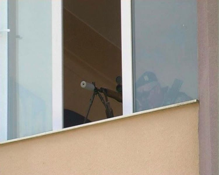 Очевидец показал фотографии, где Сорока прильнул к прицелу снайперской винтовки в окне административного здания. Также Кифоренко сообщил, что вооруженные люди заняли все помещения в рамках «военных учений» по отработке противодействия попыткам захвата административных зданий.