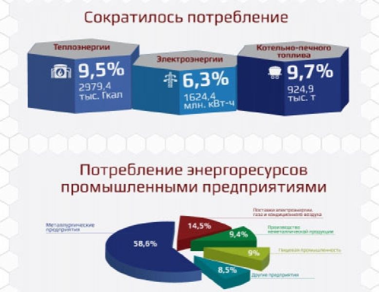 В частности, использование котельно-печного топлива уменьшилось на 9,7% (потреблено 924,9 тыс.т), теплоэнергии — на 9,5% (2979,4 тыс. Гкал), электроэнергии — на 6,3% (1624,4 млн. кВт-ч).