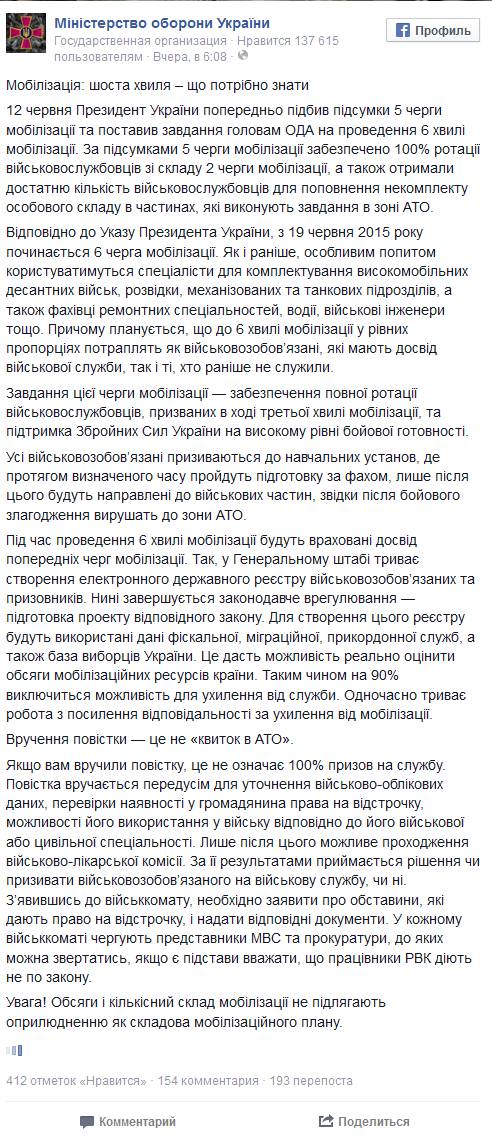 В Украине уже прошли пять волн мобилизации — три в 2014 году и две в 2015 году. 18 июня начался шестой этап мобилизации.