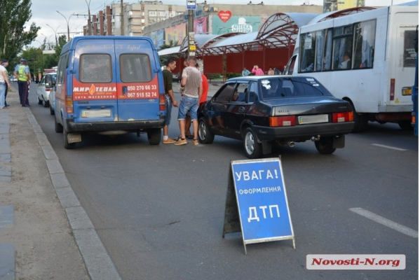 Вечером, в пятницу, 19 июня в Николаеве, на проспекте Ленина столкнулись автомобиль ВАЗ 21099 и микроавтобус «Форд Транзит».