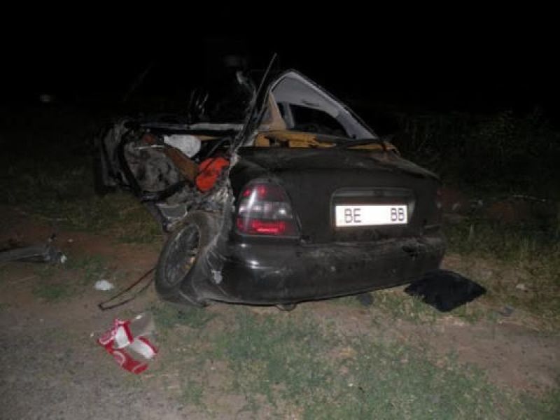 «По предварительным данным, около 22:00 водитель «Daewoo» вблизи города Южноукраинск при выезде со второстепенной дороги на главную не выполнил требования дорожного знака «Уступить дорогу» в результате чего допустил столкновение с автобусом «Neoplan», который двигался по главной дороге от города Южноукраинск в направлении города Вознесенск. От мощного удара легковушку буквально раздавило», — сообщили в ГАИ.