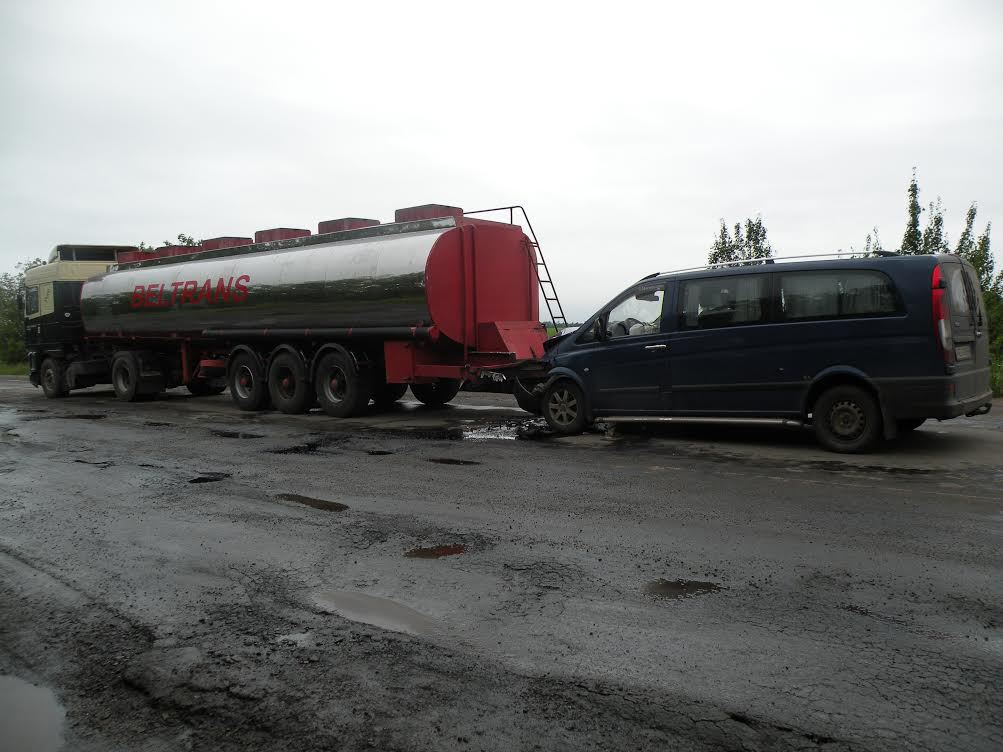 По предварительным данным, ночью, в 2 ч 30 минут, водитель автомобиля MERCEDES-BENZ VITO, двигаясь в направлении г. Новый Буг, в нескольких километрах от г. Баштанка уснул за рулем и совершил столкновение с движущимся впереди в попутном направлении полуприцепом-цистерной ЕХО, который буксировал автомобиль DAF.