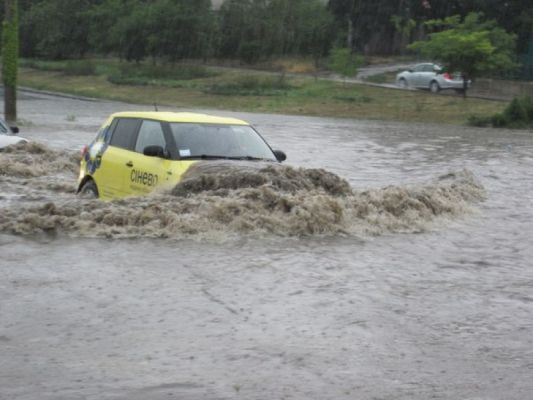 Стихия парализовала движение транспорта в жилмассиве Котовского. Осадки залили Южную дорогу в районе пересечения с Днепропетровской дорогой.