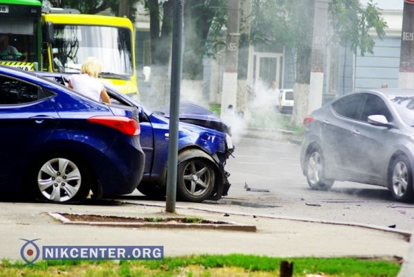 Корреспондент «Центра журналистских расследований» стал очевидцем ДТП с участием трех автомобилей, которое произошло в центре Херсона вечером 3 июля 2015 г. в 17.56.
