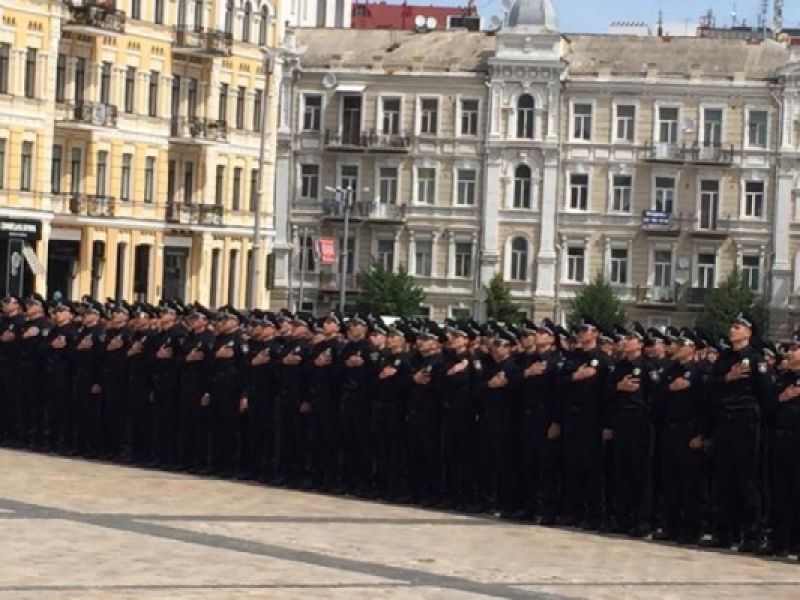 В центре Киева на Софийской площади новая столичная патрульная полиция приняла присягу, которую принял президент Петр Порошенко, глава правительства Арсений Яценюк и глава МВД Арсен Аваков.