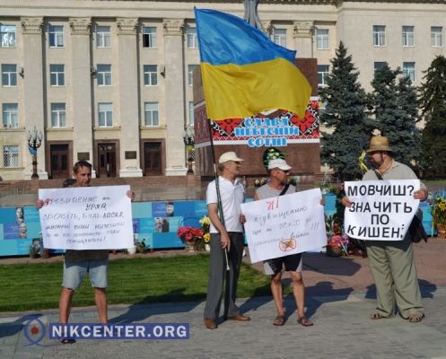 Общественники провели немногочисленный и непродолжительный (из-за очень жаркой погоды) митинг в центре Херсона.