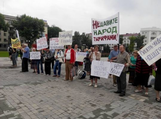 Несколько десятков пожилых бывших коммунистов вышли на митинг "против поднятия тарифов и против войны". "Что бы тарифы не давили и что бы война не убивала", комментируют участники, не давая при этом никаких рекомендаций как покончить с войной и откуда деньги взять на понижение тарифов.
