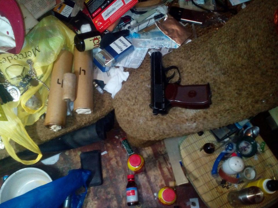 «Этот, ничем не примечательный человек оказался настоящим ублюдком. Дело в том, что он у себя в квартире устроил нарко-кухню.Регулярно варил и сбывал эту дрянь.Так же в квартире было найдено холодное и пневматическое оружие и много всего,что приносили за дозу, но сегодня это прекратилось!», — сообщили «автомайдановцы».