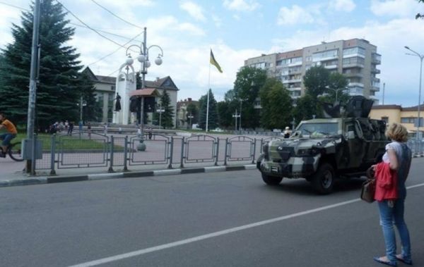 Как сообщалось ранее в СМИ, 13 июля колонна военной техники из Яворовского полигона дошла до Мукачево. Бойцы Нацгвардии начали стягивать военную технику в связи с перестрелкой в Мукачево.