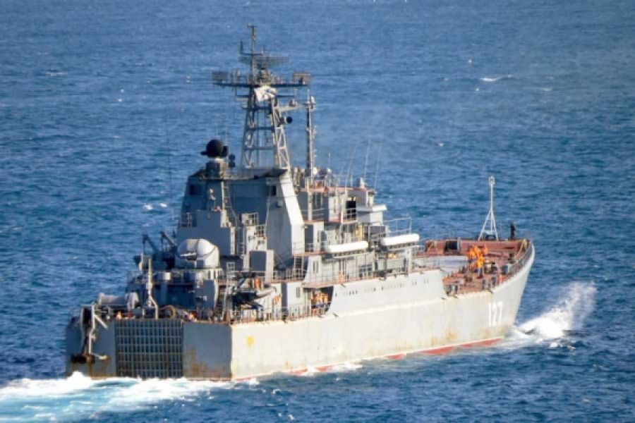 Сообщается, что на расстоянии 12 морских миль был зафиксирован буксирный корабль "Мощный", а также десантный корабль класса Ropuch "Минск".