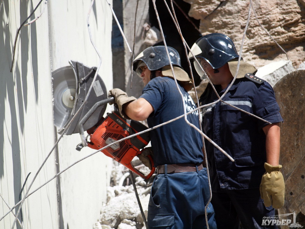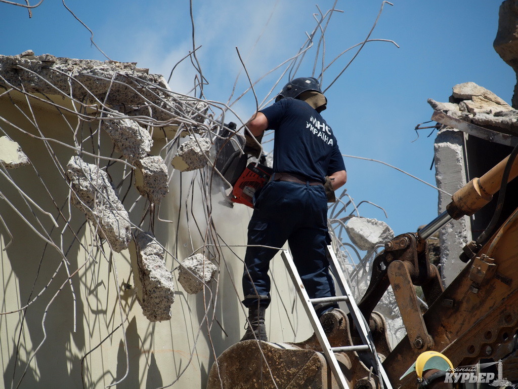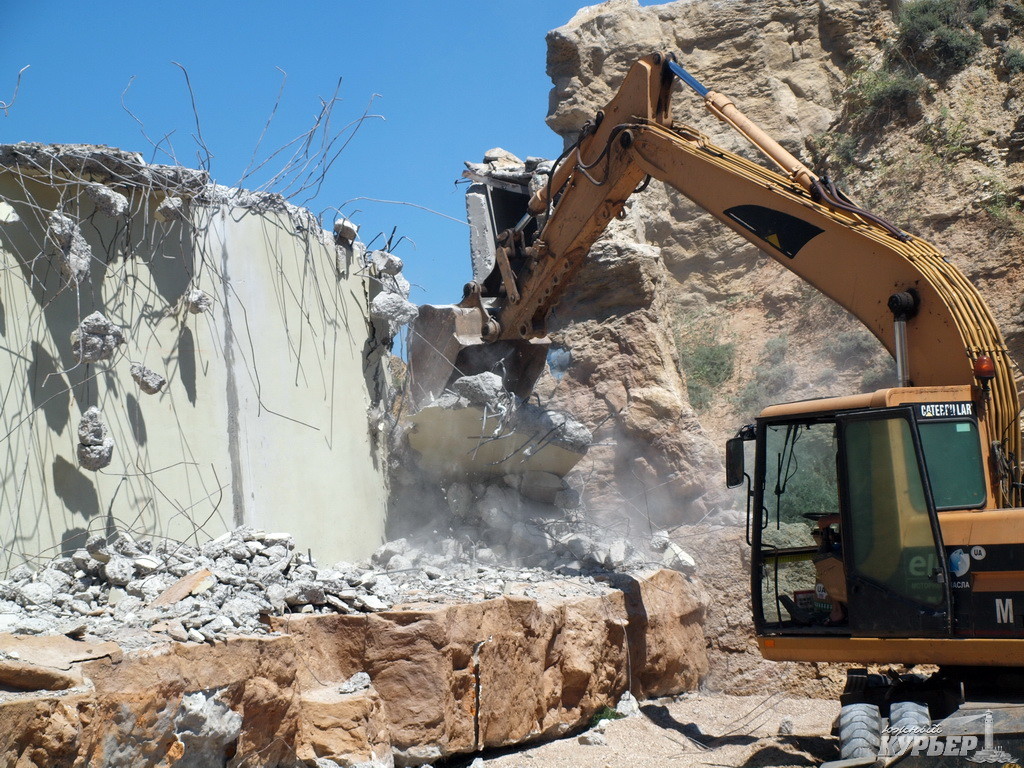 Работы проводились силами одного экскаватора, арендованного у строительной фирмы, нескольких мощных «болгарок» и спасателями ГСЧС под командованием лично начальника управления ГСЧС в Одесской области Ореста Фока. По его словам, снос проводится на основе подписанного вчера губернатором Саакашвили распоряжения и, заодно, является отличной тренировкой спасателей при разборке завалов.