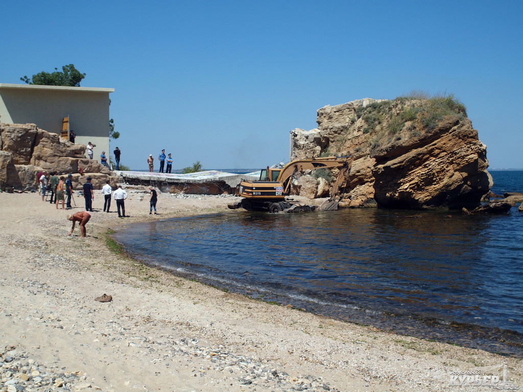 Днем 21 июля со второй попытки спасатели из ГСЧС таки смогли снести железобетонную стену, перекрывающую проход вдоль берега моря к пляжу у частной резиденции бывшего народного депутата Василия Хмельницкого, пишет издание «Южный курьер».