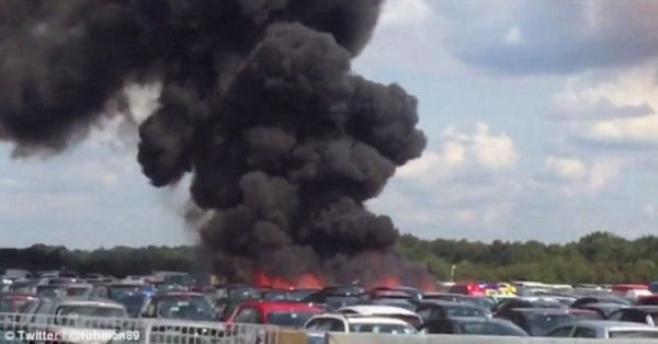 Рядом с концом полосы проходил аукцион автомобилей. Самолет рухнул на машины, несколько из них сгорели.
