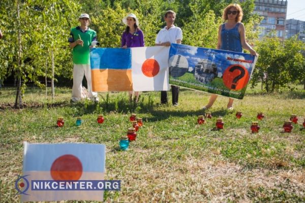 Во время акции николаевцы почтили память погибших мирных жителей, которые стали жертвами эксперимента применения ядерного оружия в японских городах Хиросима и Нагасаки.