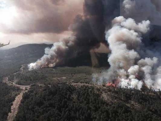 Огонь охватил площадь в 5 тысяч гектаров в регионе Эстрамадура. Постоянные и меняющиеся порывы ветра затрудняют работы по тушению пожара.
