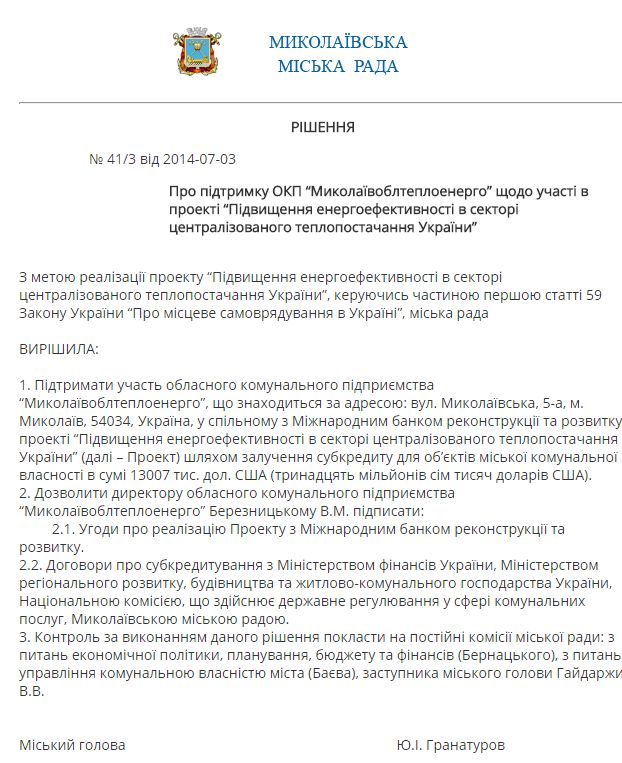 А кредит в 22 млн. долларов от Международного банка реконструкции и развития для «Николаевоблтеплоэнерго» одобрили депутаты и городского, и областного советов.