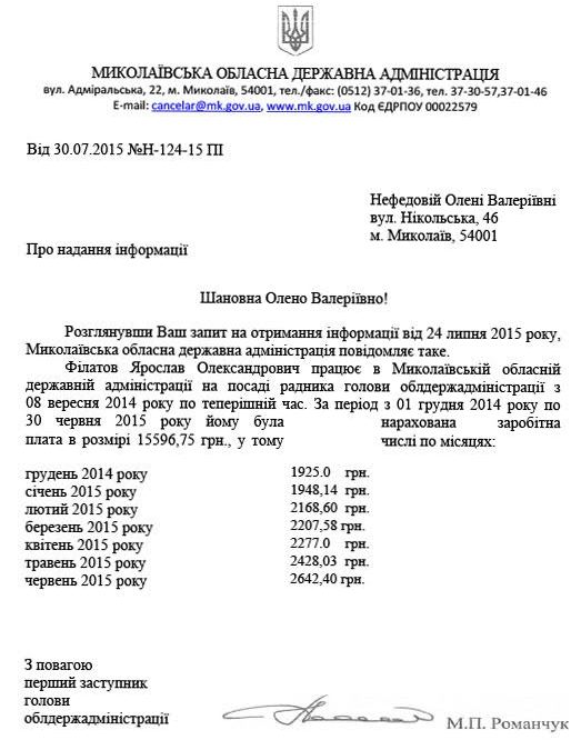 Любопытно все же, чем так прельстились эти иногородние специалисты, переезжая в Николаев? Особенно Ярослав Филатов, обладатель состояния в 3 млн. гривен (судя по его декларации), ведь советником николаевского губернатора он получает максимум 2 тыс. 900 грн., что скромно даже по николаевским меркам?