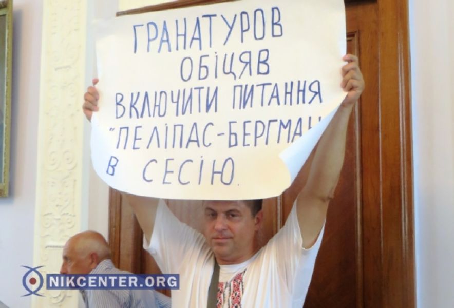 Активисты требовали включить в повестку дня вопрос о застройке сквера предприятием скандальных бизнесменов Алексея Пелипаса, Сергея и Ирины Бергманов – ООО «МАР-1», а также разорвать с данным обществом договор аренды земли. Речь идет о сквере, который находится недалеко от Николаевского зоопарка, по адресу: ул. Леонтовича, 7.