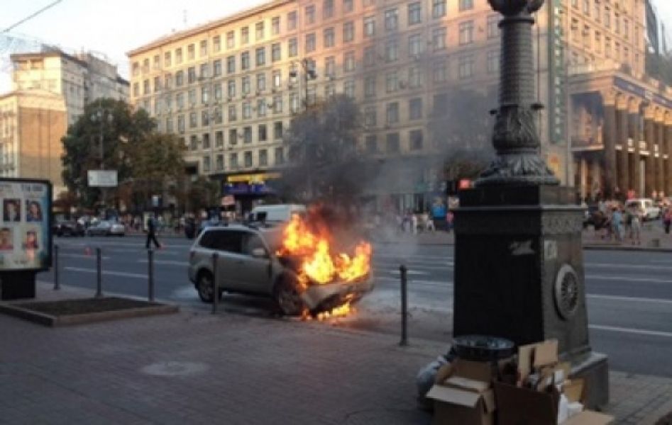 В центре Киева на улице Крещатик сгорел автомобиль посольства США в Украине, сообщают Украинские новости.
