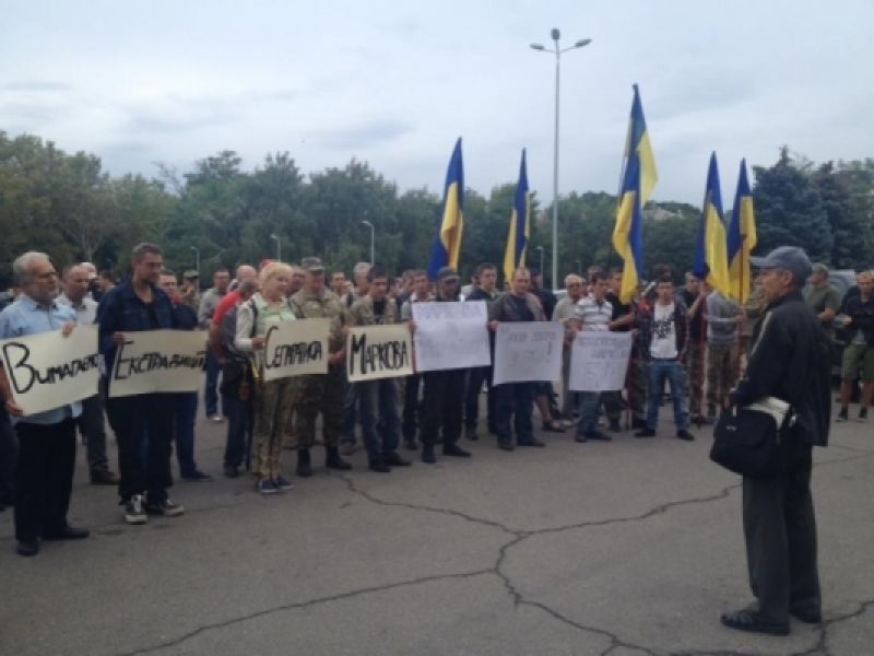Общественники пришли с плакатами с надписями: «Требуем экстрадиции сепаратиста Маркова», «Маркова — в Украину» и пр.