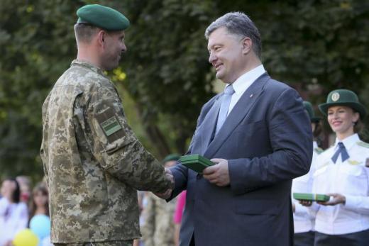 «Глава государства Пётр Порошенко вручил генеральские погоны начальнику управления внутренней и собственной безопасности администрации ГПСУ Руслану Баранецкому, начальнику управления связи – начальнику связи администрации ГПСУ Олегу Кирию, начальнику управления пограничного контроля департамента охраны государственной границы Юрию Лысюку, директору Департамента оперативной деятельности администрации ГПСУ Петру Цигикалу. Все служащие – участники антитеррористической операции на Донбассе», — сказано в сообщении.