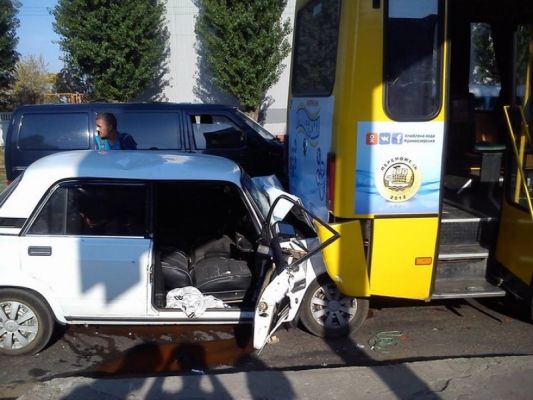 Сегодня утром, 26 августа, на ул. Черноморского Казачества водитель легкового автомобиля «ВАЗ», не справившись с управлением, врезался в маршрутку.