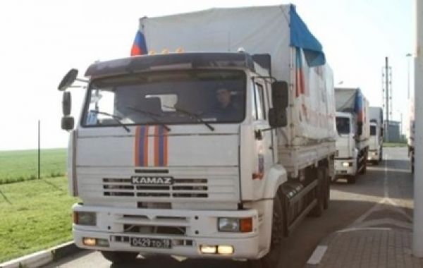 "В 04:00 мск. из Донского спасательного центра в Ростовской области колонна МЧС России с "гуманитарной помощью" для Донбасса выдвинулась в сторону границы", — говорится в сообщении.