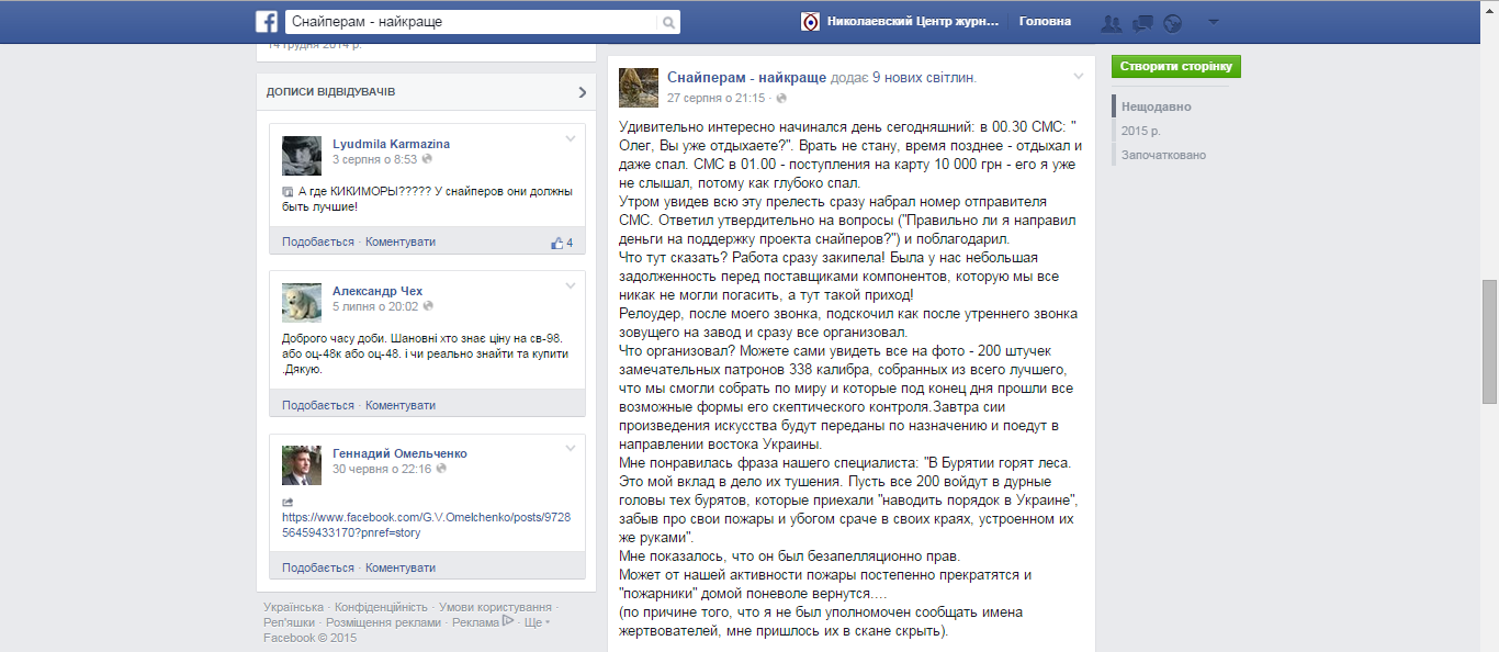 Об этом сообщается на странице «Снайперам — найкраще» в сети Facebook.