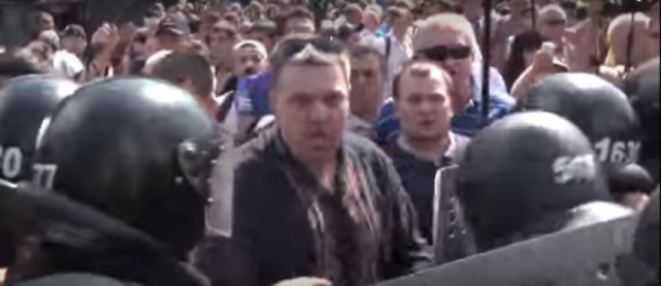 В сети появилось видео, на котором лидер ВО Свобода Олег Тягнибок во время митинга под Верховной Радой 31 августа принимал участия в столкновениях.