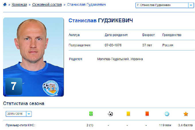 В его составе играет 37-летний экс-капитан МФК «Николаев» Станислав Гудзикевич. За «корабелов» в 2011-2013 годах «Гудзик» провел 50 матчей (забил в них 4 гола), а в 2013-2014 годах – выступал за аматоров из «Торпедо» Николаев. Гудзикевич солидную часть карьеры отдал ФК «Севастополь» и, видимо, решил завершить свой футбольный путь в его «наследнике». За СКЧФ Станислав играет уже более года, а после аннексии Крыма отметился не самым почетным поступком, приняв российское гражданство.