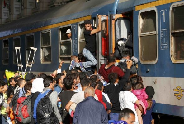В четверг, 3 сентября, незаконные мигранты в Будапеште штурмуют поезд. Люди лезут через окна и двери буквально по головам друг друга.