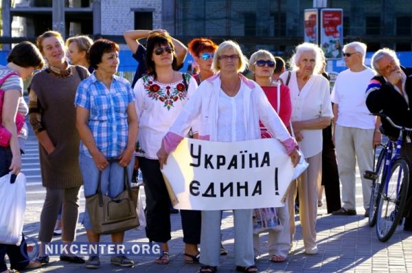 Херсонцы, представляющие национально-патриотические партии и общественные организации, провели в центре города митинг и марш с целью «напомнить, что в Херсоне есть патриоты».