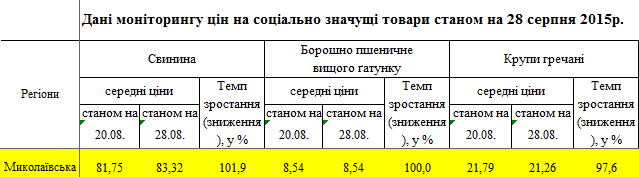 К примеру, килограмм свинины, который по данным мониторинга потребительских цен на социально значимые товары по состоянию на 28 августа 2015 года в Николаевской области стоил в среднем 83,32 грн, «Мясницкий двор» продал гороно по цене 98 гривен за килограмм. Говядины было закуплено 6 тыс. 500 кг на общую сумму 637 тыс. грн.