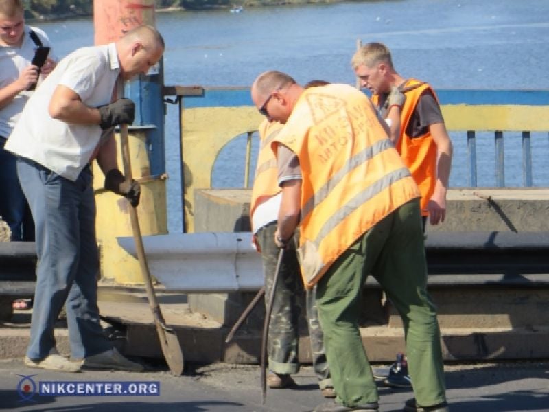 Работники КП «ЭЛУ автодорог», на чьем балансе находится мост, пытались его развести с помощью ломов. Однако полуторачасовая борьба с асфальтированным покрытием результата так и не дала.