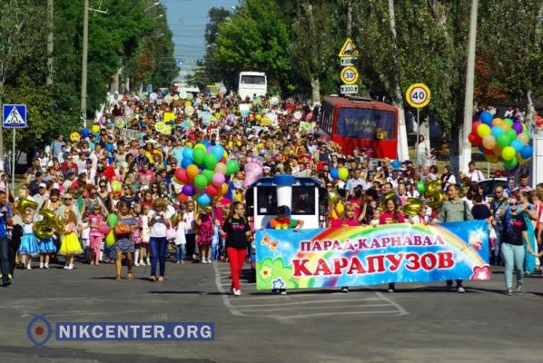 «Парад карапузов» стал первым массовым мероприятием в программе праздника. Одетые в маскарадные костюмы дети и родители прошли по улице Перекопской и по проспекту Ушакова к набережной Днепра.