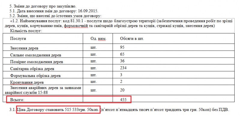 Согласно документации, предприниматель до конца 2015 года должен обеспечить проведение работ по снесению и кронированию деревьев, сильному и умеренному омоложению деревьев, а также выполнить санитарную и формовочную обрезку деревьев на территории Центрального района. Общее количество деревьев, которые требуют ухода, составит 455 штук.