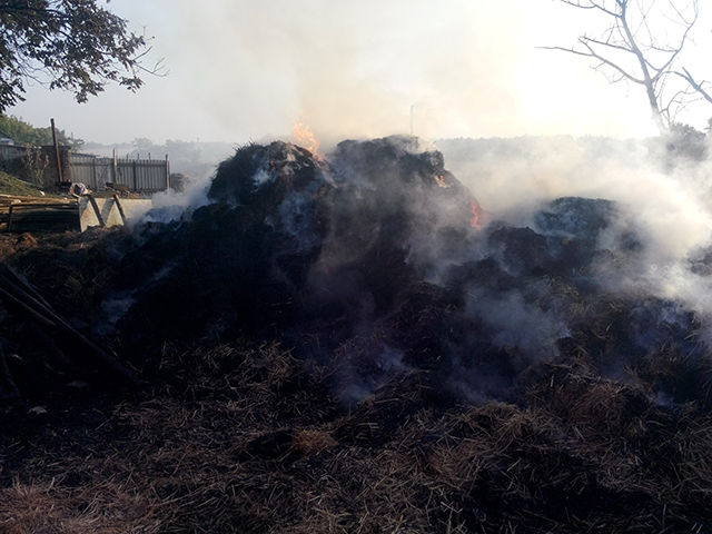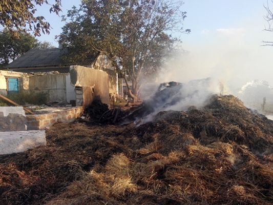 На место вызова был направлен дежурный караул 14-й Государственной пожарно-спасательной части Главного управления ГСЧС Украины в Николаевской области. О происшествии спасателям сообщил сам хозяин. Он сообщил, что загорелась скирда сена и тюки соломы на территории его частого домовладения.