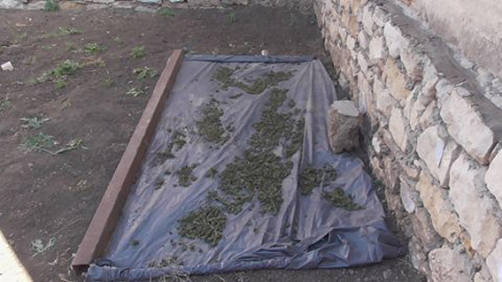 За огражденной территорией милиционеры обнаружили обработанный участок земли, на которой в лунках росли растения рода конопли в количестве 100 кустов. Рядом, в полимерных банках и горшках также были высажены растения конопли в количестве 23 кустов. Неподалеку на территории склада лежала полиэтиленовая пленка, на которой сушилисьсоцветия растений конопли в количестве примерно одного десятилитрового ведра, а также хозяйственная сумка с сухими растениями конопли.