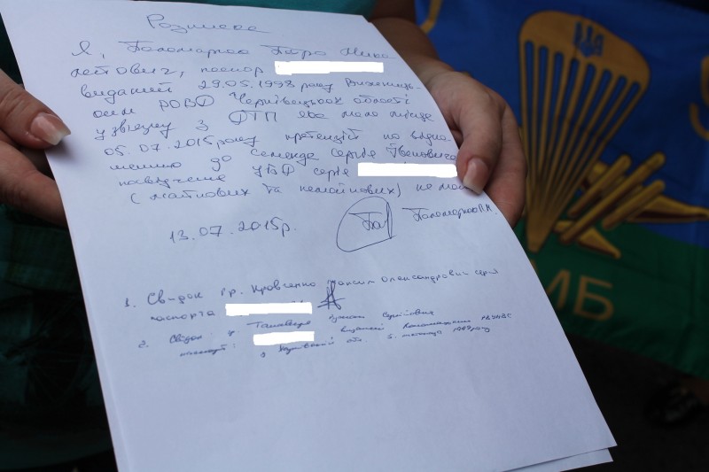 Активисты возмущены тем, что Паламарюк, помимо полученных 235 тыс. гривен на ремонт машины, требует у бойца еще 30 тыс. гривен. Документы на погашение долга и все расписки от Паламарюка есть у стороны обвиняемого.