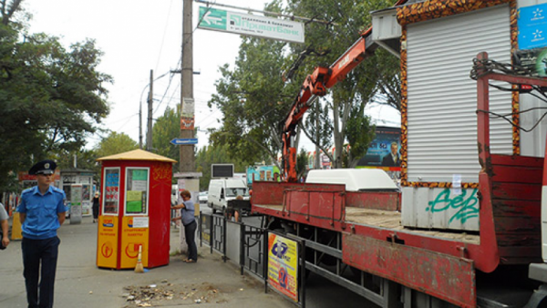 В Центральном районе на остановке общественного транспорта по ул. Садовой представители администрации района и Государственной фискальной службы осуществили демонтаж торгового киоска.