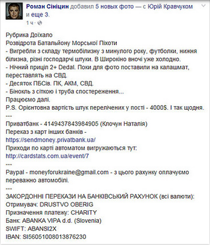 "Работаем дальше. Ориентировочная стоимость штук перечисленных в посте – 4 тысячи долларов. И так каждый день», — пишет волонтер.