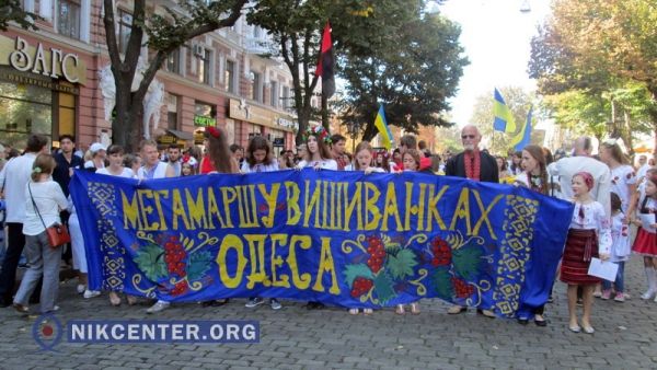 В Одессе состоялся уже седьмой «Мегамарш в вышиванках». В мероприятии приняло участие несколько сотен одесситов в национальной одежде.