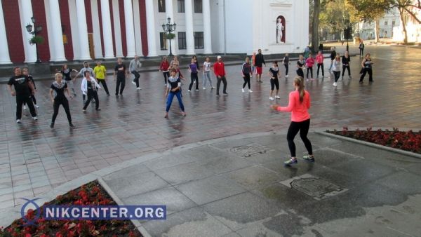 Сегодня, 4 октября, на Думской площади, возле здания Одесской мэрии, прошла общегородская зарядка.